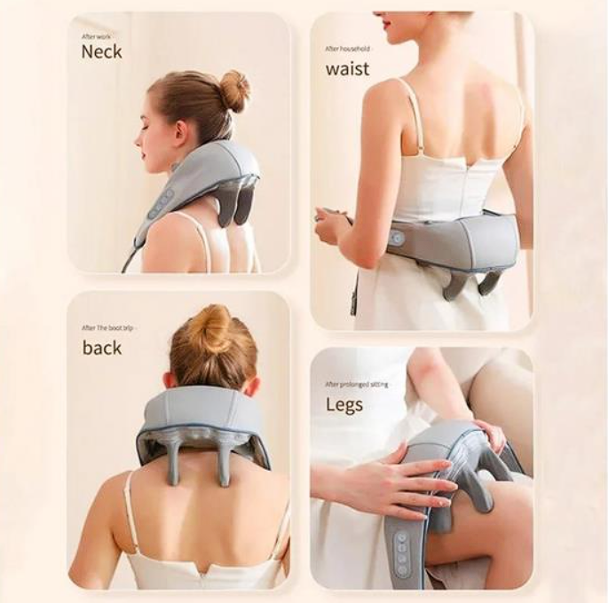 Relájate como nunca antes 💆♀️💆♂️. Este masajeador combina amasado profundo, vibración y calor infrarrojo para aliviar tensiones, contracturas y dolores musculares en minutos.
